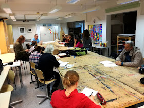 Mattina di lunedi, tempo di briefing con Kari Kantola e gli  artisti finlandesi coinvolti nel nostro progetto: lo scultore Raimo Jaatinen, la sua assistente Suvi Forssen, un altro scultore Jyrki Poussu e la sua compagna pittrice